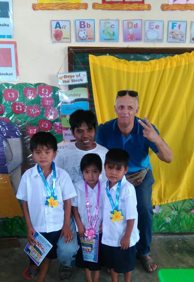 Wil Wolfs voor een bassischool op de Filipijnen.